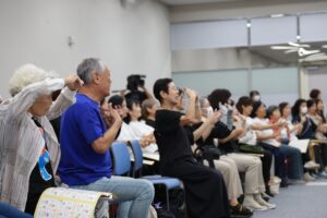 カフェのようなBGMの中、肩甲骨周りの筋肉を意識した動きも体験し、心身の健康について楽しく学ぶ時間となりました。